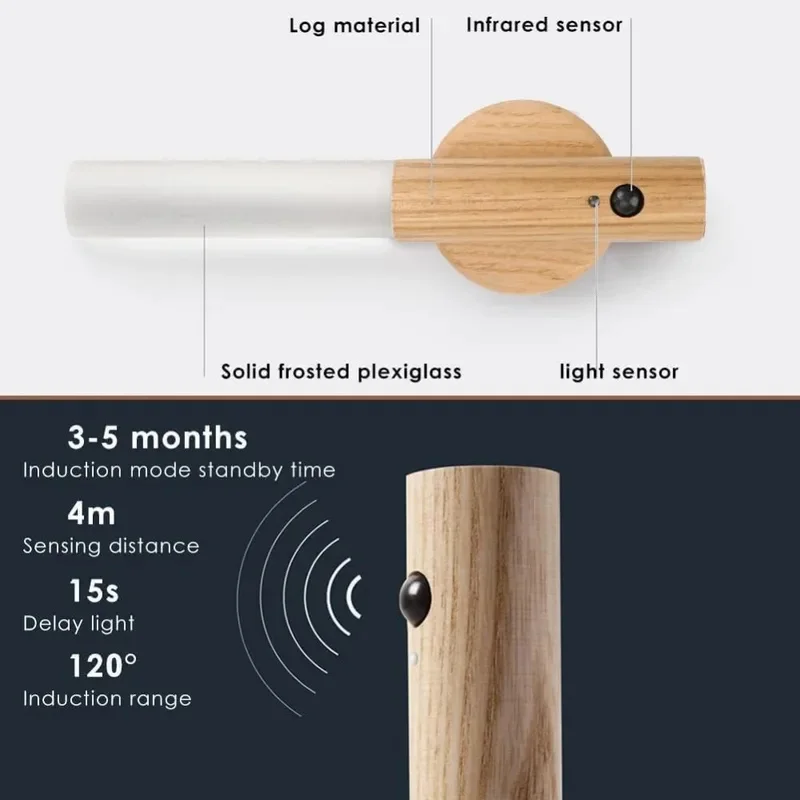 HomeElectronicsIntelligent Wooden Magnetic Suction Lamp LED Charging Night Light Staircase Corridor Bedroom Atmosphere Human Body Sensing Light